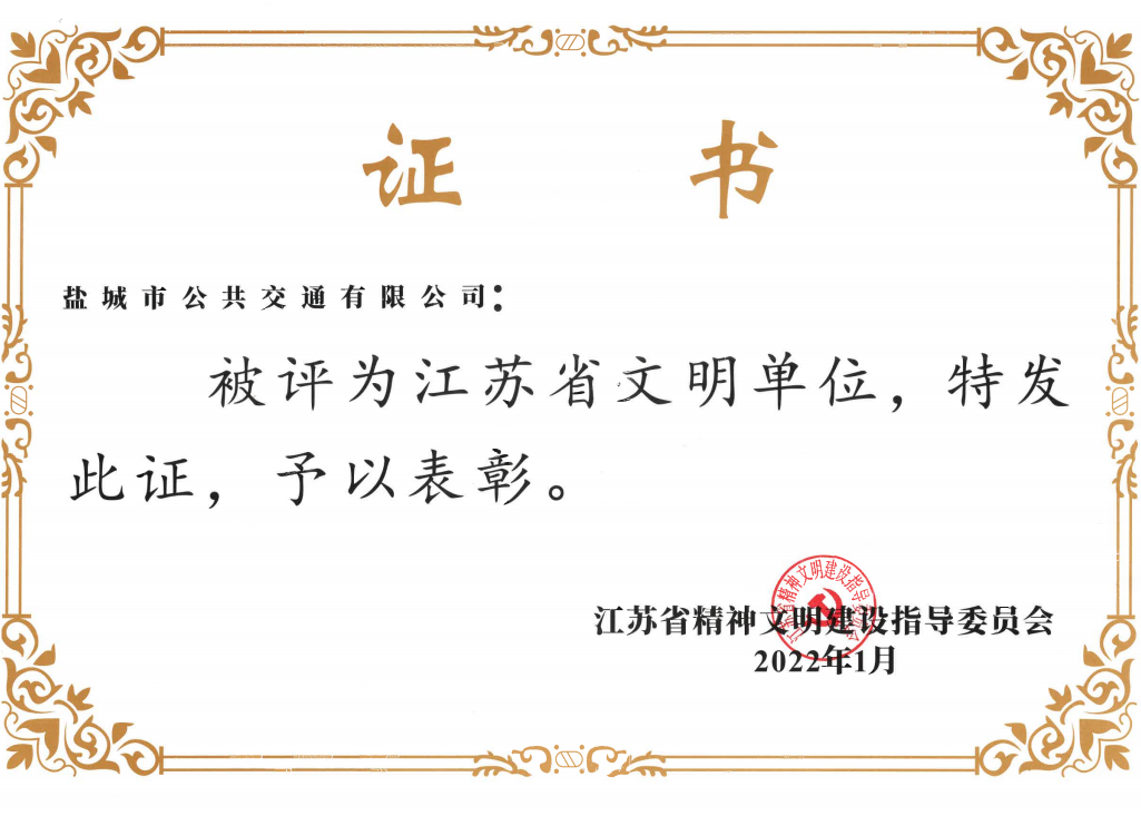 - 2022年1月公司獲評(píng)江蘇省文明單位